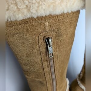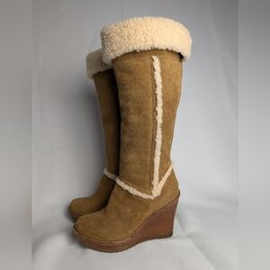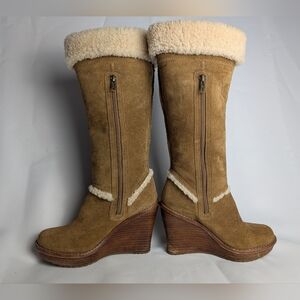 UGG Australia Aubrie Tan Suede Wood Wedge Heel Size 6 Winter Boots Women