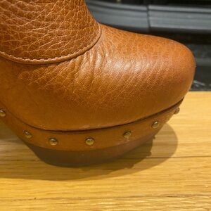 UGG Women's Cosima Brown Genuine Leather Ankle Boots Size 7 Studded High Heel Platform