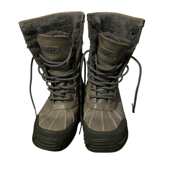 Women's UGG Australia boots. Grey leather and suede upper. Lace-up closure. Vibram sole. Warm shearling lining. Excellent for winter weather.