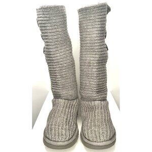 UGG Australia Womens Boots Cardy Wool Cable Knit Tall Foldable Button Gray Sz 7