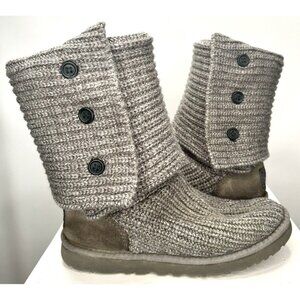 UGG Australia Cardy Boots Women's Size 7 Gray Cable Knit Tall Foldable Button