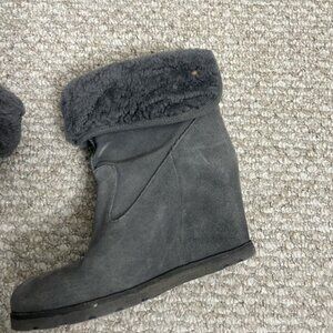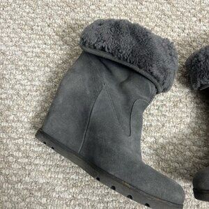 UGG Australia Womens Kyra boots 8 Suede Leather sheepskin 1009318 Gray wedge