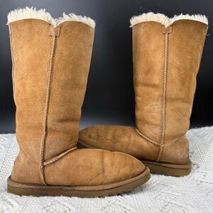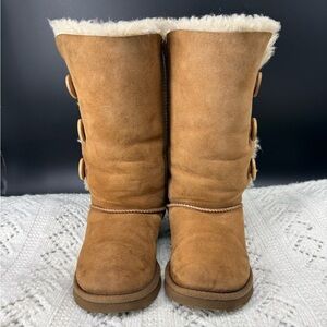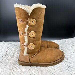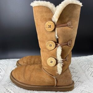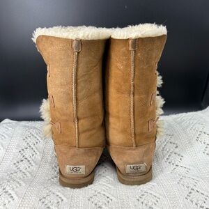 UGG Bailey Button Triplet Womens 6 Chestnut Tan Brown Sheepskin Leather Winter
