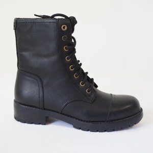 Stylish black combat boots. Durable leather. Lace-up design. Perfect for any outfit. Make an offer!