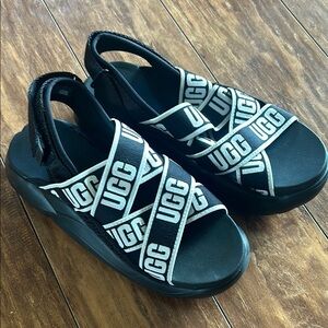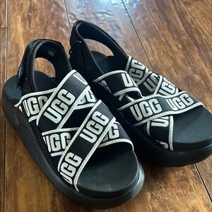 Experience the perfect blend of style and comfort with these UGG black sandals. Featuring a distinctive criss-cross strap design, these sandals are ideal for casual outings. The durable sole and contoured footbed ensure all-day comfort.