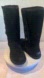 UGG Suede Boots. Bailey Button Triplet Midcalf. Sheepskin footbed and inside heel. Iconic UGG heel branding. Side Closure. Fun pattern lining. Indoor outdoor classic cozy style. Fall and Winter staple. Black Suede. Size 6. Great/excellent Used Condition GUC.