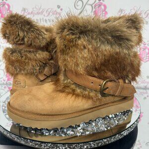 UGG CLASSIC BUCKLE MINI CHESTNUT FAUX FUR SHEARLING BOOT USA 10 rare brown furry