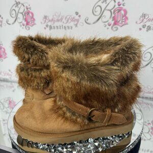 Size 10 USA. Very rare sought after boots with fur. Buckle with logo Ugg. These are stunning. Very versatile. Lovely brown caramel chestnut π° color. Goes with everything. Warm and cozy. Timeless. Sooo many compliments ahead! π