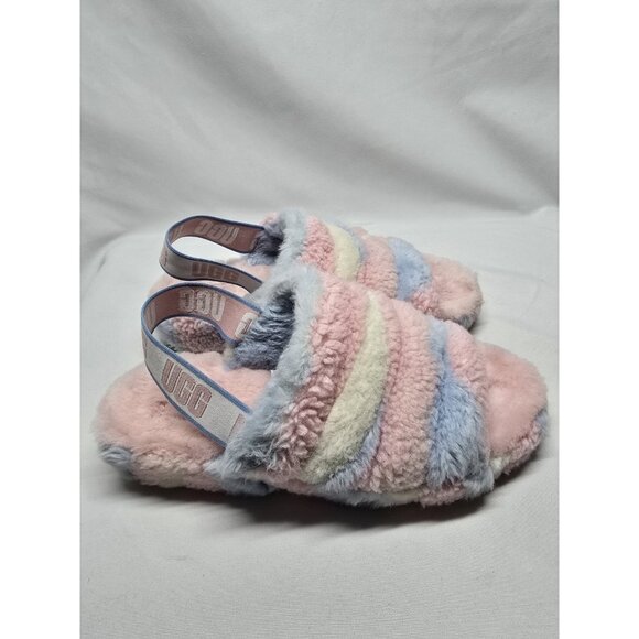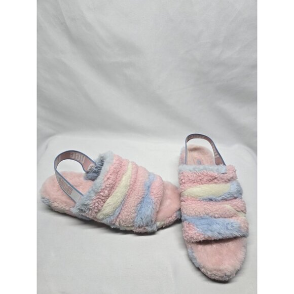 UGG FLUFF YEAH SLIDE Slippers Cali Collage Women's 10 Pastels Pink Blue White