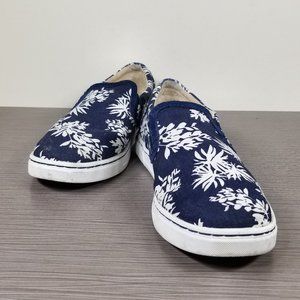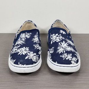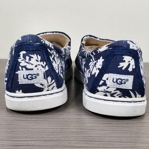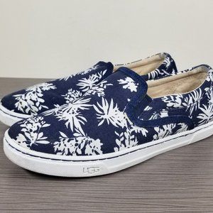 UGG Navy Canvas Fierce Tropical Flower Print Slip On Sneakers Blue White Size 7