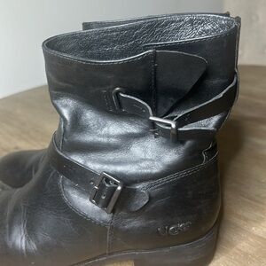 UGG Fletcher Black Leather Water-resistant Buckle Ankle Boots Women size 7