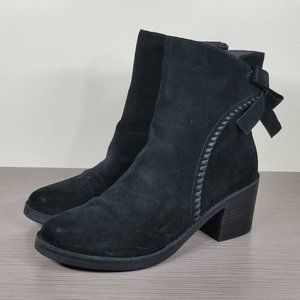 UGG Fraise Whipstitch Bow Ankle Bootie, Black Suede, Womens Size 11 / 42