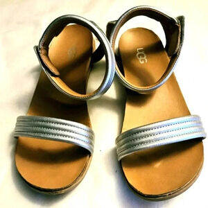 UGG K Ethena Silver Flat Sandal Size 6 US Cork & Rubber Sole
