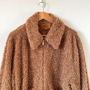 UGG Kaley Jackeline Camel Teddy Bear Oversized Jacket Zip Up Fur Coat Size Small