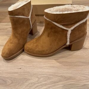 Suede UGGpure™ wool spill seams Sheepskin shaft lining Leather forefoot and heel lining PORON® and foam insole Leather insole lining Crepe-like rubber outsole 3.25 shaft height 2.75 heel height
