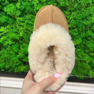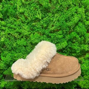 Their next favorite slipper is here, and it's our Disquette. Your little one is going to love the platform boost, and signature UGGplush™ lining on the fluffy sheepskin collar. Made to match the Disquette in our Women's collection, the Kids' version features the same suede upper and Twin Seam detail — perfect for a mini-me moment.