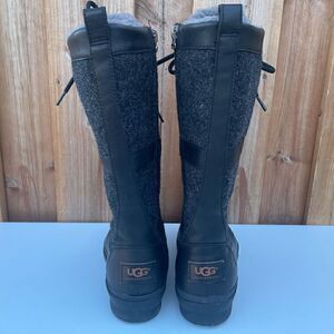 UGG Leather Fur Lined Winter Snow Boots Black Lace Up Waterproof Size 6