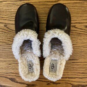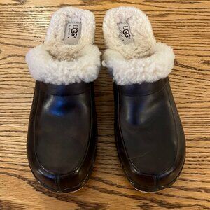 UGG Leather Shearling Fur Lined Wooden Clogs