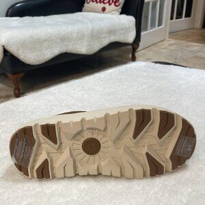 Who (and we can't stress this enough) wants to take a walk in the drizzle with us? We can always count on the Tasman Weather Hybrid to travel with us outdoors, even if its a little wet out there. Featuring waterproof suede and seam-sealed construction as well as our cozy UGGplush™ upcycled wool lining, the Tasman Weather Hybrid offers a light, slipper feel with an easy slip-on silhouette. The outsole is made from renewable, rainwater-nourished sugarcane and features a permanent galosh for wet conditions.