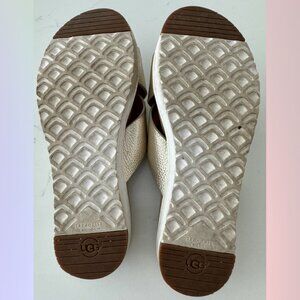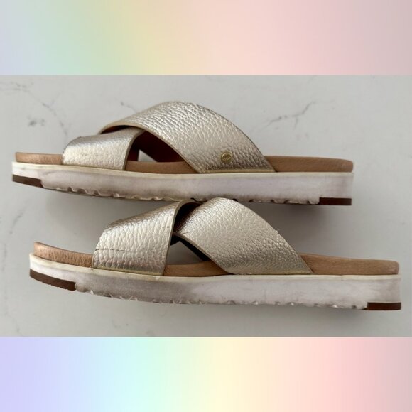 UGG Metallic Gold & Tan Crossover Sandals – Size 7.5