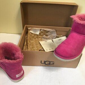 UGG Mini Bailey 1 Button Pink Magenta Boots Box Booties Shearling Fur Snow 6 Box
