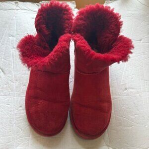 UGG Mini Bailey Button Shearling Short Boots Fur Red Winter Cozy Warm