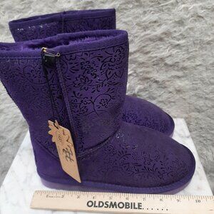 Check out this UGG Purple Classic Tall Sheepskin Flower Pattern Boots in excellent pre-owned condition, very minor wear on the outsole, the leather upper and the insole still in new shape.