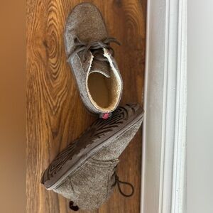 Stylish women’s UGG ankle boots. Brown with red accent. Cozy and versatile. In great condition but I just don’t reach for them.