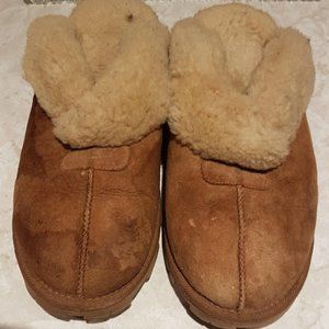 Uppers are made of leather and sheepskin. The lining is sheepskin.