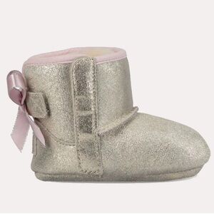 UGG Sparkly Gold Suede Kids Boots with Pink Bow & Lining