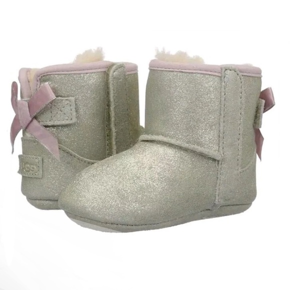 UGG Sparkly Gold Suede Kids Boots with Pink Bow & Lining