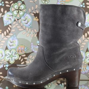Gray suede - sheepskin and leather lined - can wear sides up or down