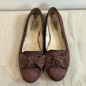UGG Sz 10 Alloway Suede Bow and Studs Shearling Lined Round Toe Ballet Flats. Super comfortable. Stylish and edgy. Statement piece. Dress up or down.