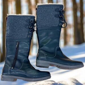 UGG Sz 7 Elsa Waxed Leather Wool Waterproof Riding Boots Lace Up Zipper Black