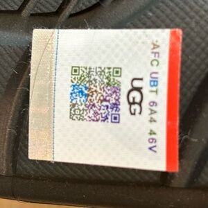 * UGG webbing, Hook-and-loop closure, Removable heel strap, Adjustable heel strap