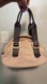 Elegant UGG shoulder bag with tan suede and brown leather accents. Features stylish buckle details.