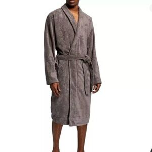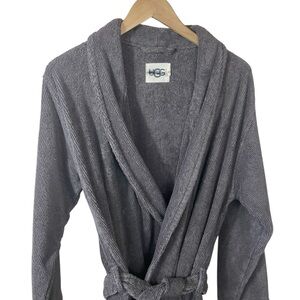 The Turner Terry Robe from UGG, size M/L. 100% cotton in a nice grey charcoal. Shawl collar, belt and side seam pockets.