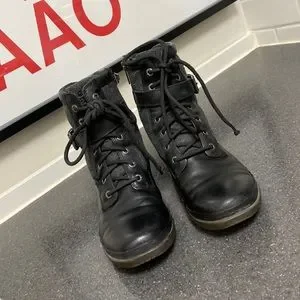 These boots are crafted from waterproof leather with seam-sealed construction, the Kesey is a versatile lace-up boot with a vintage look, zip entry, and soft wool lining. They are in pre loved condition- size 6 - my daughter loved them because they were warm - wool lining is amazing and cozy and CLEAN ! See the last picture - recently washed and vacuumed by remove lint - like new insoles!