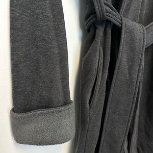 Indulge in the softness of this UGG robe. Perfect for relaxing at home. Features a plush texture, two pockets and ajustable sleeves