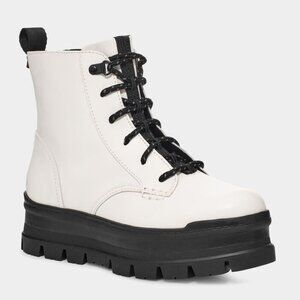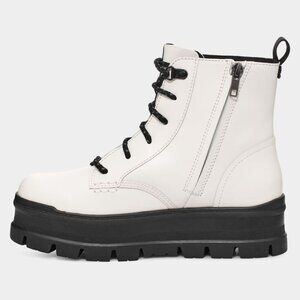 A fashion-forward combat boot cast in durable waterproof leather, the Sidnee adds rebel edge to any outfit with its rugged platform sole and exaggerated tread. Featuring easy zip-up entry and a removable insole made of our signature UGGplush upcycled wool blend, this bold style offers convenience and a cozy feel. Pair with ripped jeans and a biker jacket, or contrast with a miniskirt and chunky sweater.