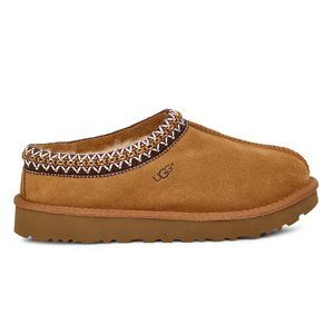 New in box⬆️see pictures Color Name: Chestnut 5955 Suede upper UGG® Tasman braid or UGG® Tasman braid (70% recycled polyester, 30% rayon) 17mm sheepskin lining 17mm UGGpure™ upcycled wool insole or 17mm UGGplush™ 80% upcycled wool, 20% lyocell insole Treadlite by UGG™ outsole for comfort Polyester binding or textile binding made from 100% recycled polyester fibers Heat-embossed UGG® logo