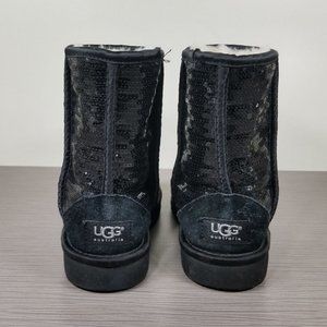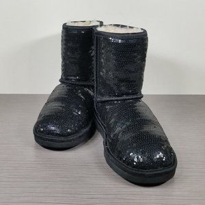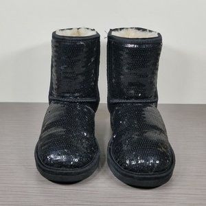 UGG Youth Classic Short Boot, Black Sparkle Sequins, Girls Size 2 / 32