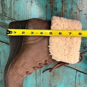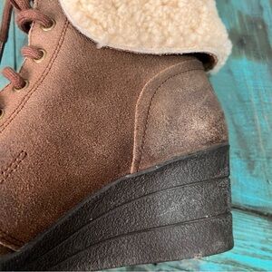UGG Zea Chocolate Brown Wedge Ankle Shearling Boots Size 7