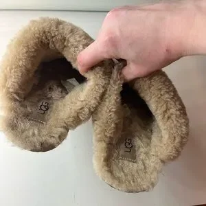 Okay condition - my dog got ahold of the right r slippers and ate the fur off, other than that they are in lightly used condition