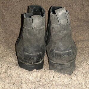 UGG-BONHAM II-Black Distressed Leather Chelsea Booties-Pull-On-Sz 9.5-Excellent