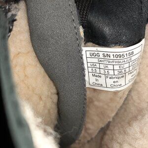 UGG-Brystl-Grey Black Leather-Fur Lined-Waterproof-Side Zip-Sz 5.5-Near Mint