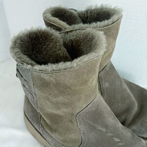UGG Naiyah Boots Olive Suede Wool Shearling Cozy Dark Lace Up Womens 8