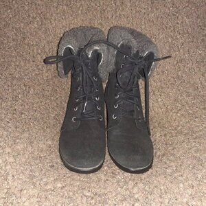 UGG-Zea-Black Suede Leather Shearling Wedge Lace-Up Boots-Sz 36
