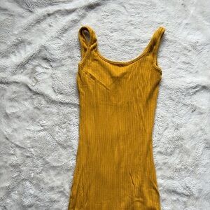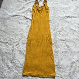 UK2LA Mustard Yellow Ribbed Bodycon Midi Dress | Sleeveless Scoop Neck