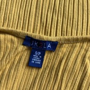 Add a pop of color to your wardrobe with this stylish UK2LA mustard yellow ribbed bodycon dress. Designed with a flattering scoop neckline and sleeveless silhouette, this midi-length dress hugs your curves in all the right places. Made from a soft, stretchy ribbed knit fabric, it’s perfect for casual days out, summer parties, or layering under a jacket for a night out.